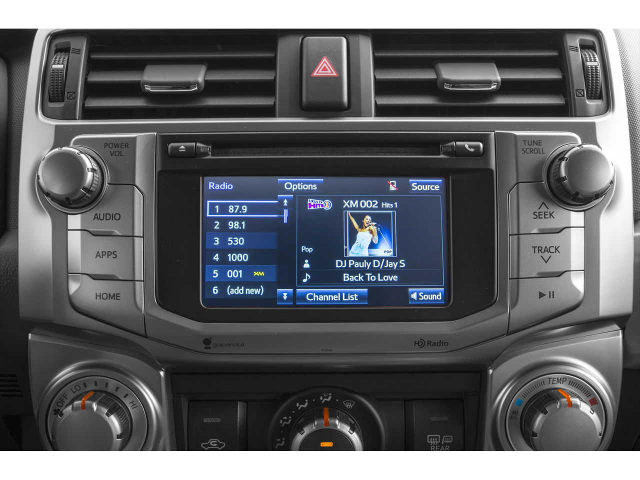 - Radio: Entune Premium Audio with Navigation -inc: App Suite, Multimedia bundle (6.1-in, high resolution touch-screen w/split screen display, AM/FM CD player, 8 speakers, auxiliary audio jack, USB 2.0 port w/iPod connectivity and control, advanced voice recognition, hands-free phone capability, phone book access and music streaming via Bluetooth® wireless technology), HD Radio, HD predictive traffic and Doppler weather overlay, AM/FM cache radio, Sirius XM All Access Radio w/3-month complimentary trial and Gracenotes album cover art, Entune App Suite includes Bing, Facebook Places, iHeartRadio, MovieTickets.com, OpenTable, Pandora and Yelp; real-time info including traffic, weather, fuel prices, sports and stocks Access to Entune services is complimentary for three years. See toyota.com/entune for details.