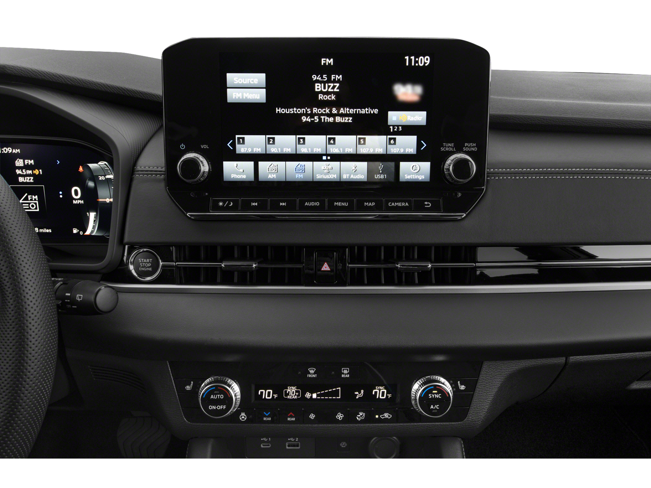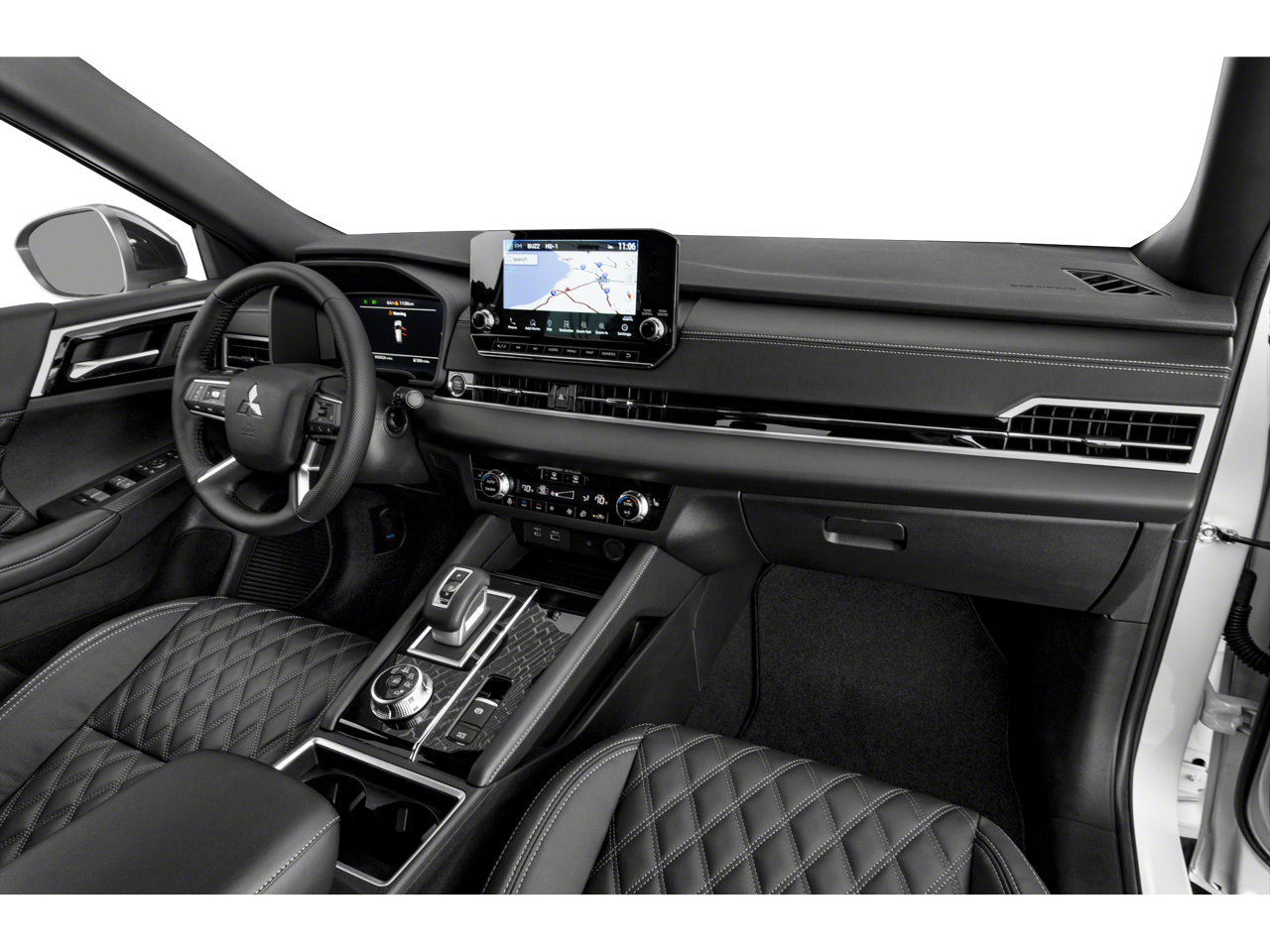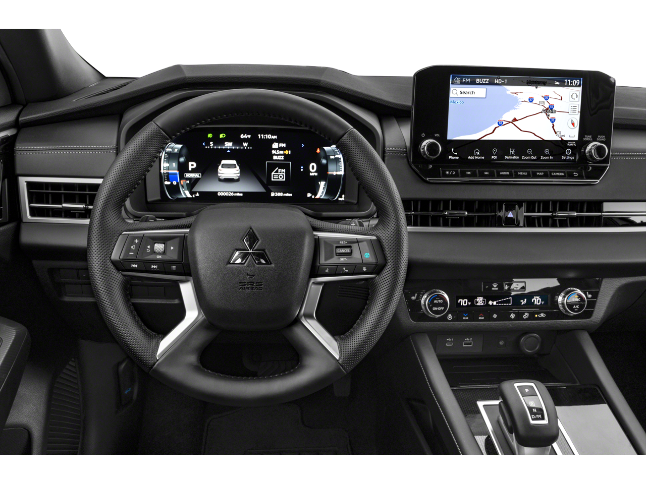 - Radio: AM/FM 9.0" Navigation w/Smartphone Link -inc: 6 speakers, Apple CarPlay, Google Android Auto, SXM all-access and SXM traffic and travel link w/90-day subscription, Mitsubishi Connect, HD Radio, Bluetooth® wireless technology, steering wheel controls for phone, audio and voice recognition and USB ports