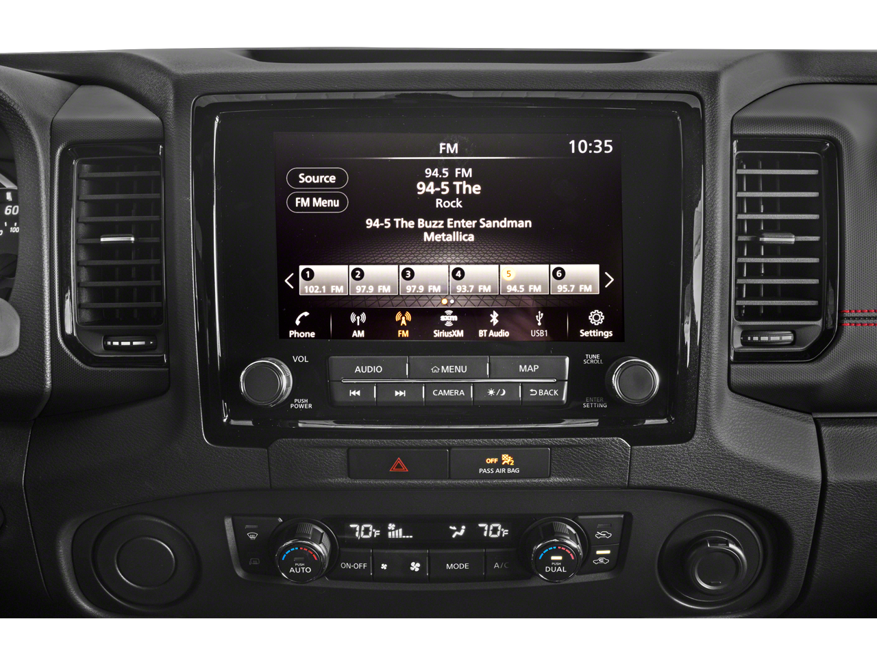 - Radio: SXM/AM/FM/AUX/USB Audio System w/6 Speakers -inc: 9.0" color touch-screen display, wireless Apple CarPlay, Android Auto, Bluetooth® hands-free phone system and streaming (audio or text message), voice recognition for audio features, Siri Eyes Free, 1 USB-A and 1 USB-C front ports, steering wheel audio controls, Nissan door to door navigation, NissanConnect services and Wi-Fi hotspot