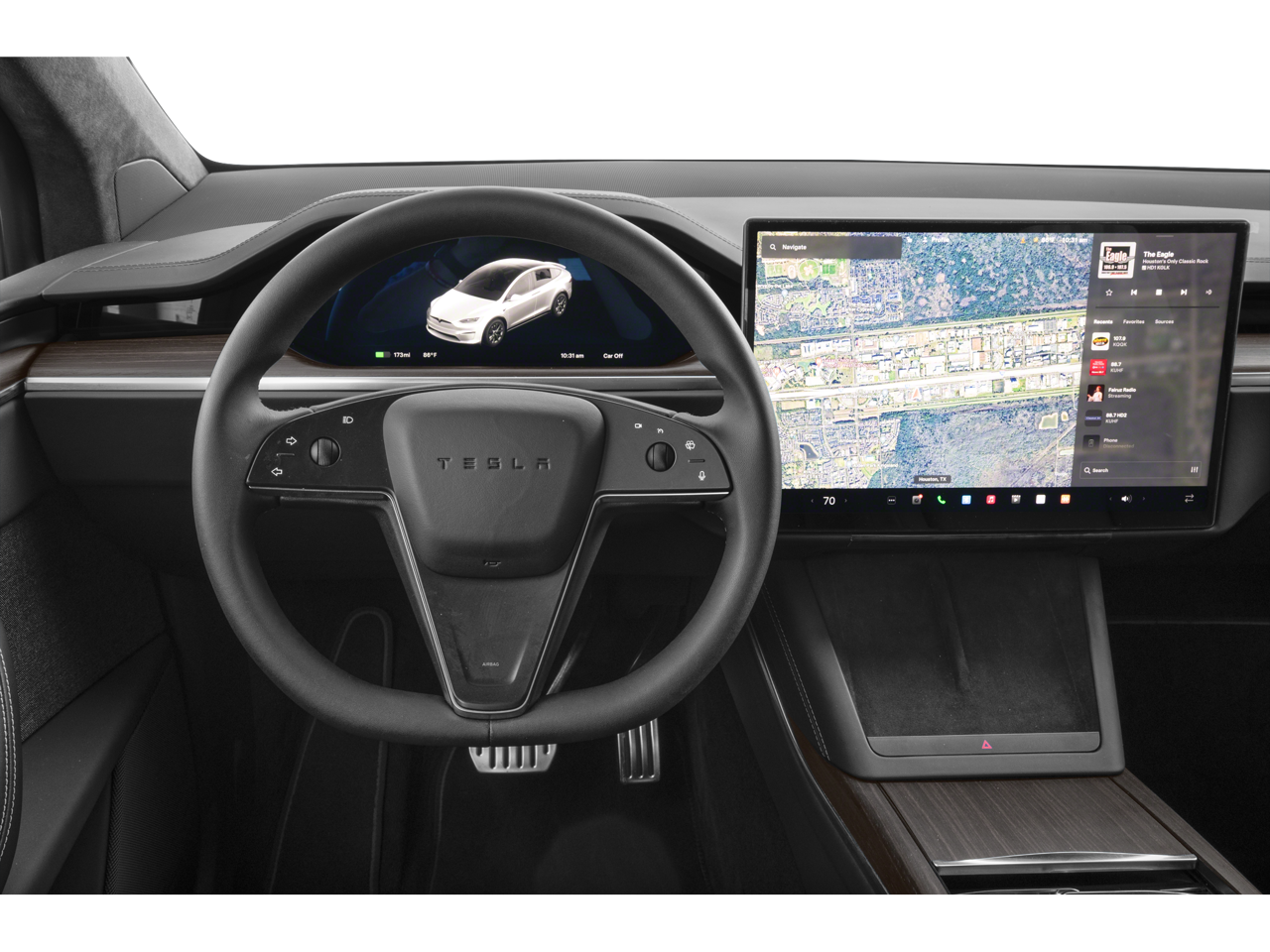 - Radio: Premium Audio System -inc: premium 22-speaker (960-watt) audio system w/active road noise reduction, multi-device music and media over Bluetooth®, FM radio, SiriusXM, internet streaming radio, 17" center display, 12.3" driver's display, in-car touchscreens to play games via Tesla Arcade and wireless controller compatibility, Standard connectivity is included at no additional cost for 8 years following the new vehicle's original delivery, Certain high data usage vehicle features require at least standard connectivity including maps, navigation and voice commands, Premium connectivity (including live traffic visualization, satellite-view maps, video streaming, Caraoke, music streaming, internet browser) is complimentary for 1 year, then available as a subscription, Trial unavailable if drive anywhere package is purchased Features subject to change and may vary based on hardware configuration. New features that become available after delivery may be subject to additional charges.
